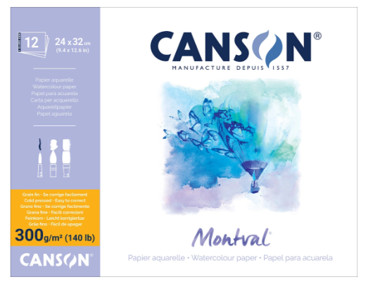 Canson Montval är ett syrafritt papper med fint strukturerad yta. 100% cellulosa, syrafritt. Lämpligt för akvarell, akvarellpennor och gouache, passar även grafit, ritkol, torrpastell etc.