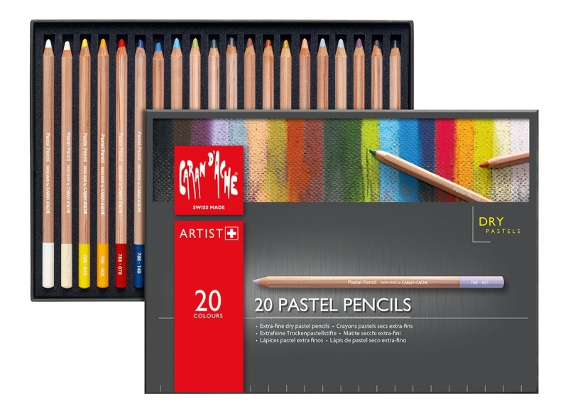 Caran d'Ache pastell pennor är tillverkade av rena råvaror för att skapa en pastell penna pasta som matas för hand in i rundformar rör, ugnstorkas i särskilda korgar, försiktigt limmade mellan två remsor av de finaste Kalifornien ceder, och skärs i längder. Fyra lager klarlack appliceras, och stor försiktighet vidtas för att exakt matcha färgen på locket. Som ett sista steg, är pennorna slipade i en dubbel-konprocess, en särskilt känslig operation för en sådan ömtålig produkt.