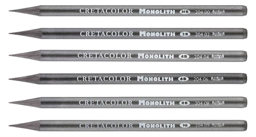 Monolith - Grafitpenna utan trähylsa. Hela pennan består av 6x mer grafit. Lackad i silvergrå nyans. Möjligt att teckna med spets eller bredare linjer. L 150mm, Ø 7mm. MonolithGraphit. 6 hårdheter.