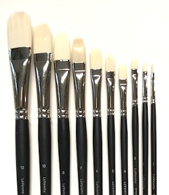 Bra kvalitet. Penslar av styvt syntetfiber, långt svartskaft. Passar för olje och akrylmålning.