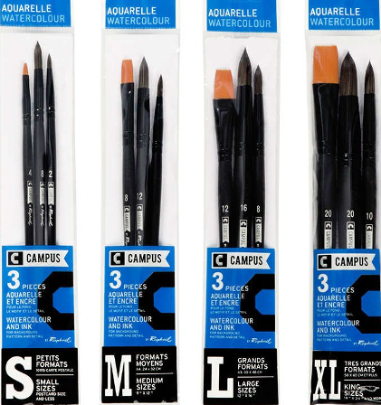 Hög kvalitet till ett bra pris. Set med Raphael Campus-penslar med borst, syntetiskt hår, kort och långt skaft perfekt för både akryl, gouache, akvarell och hobbymålning.