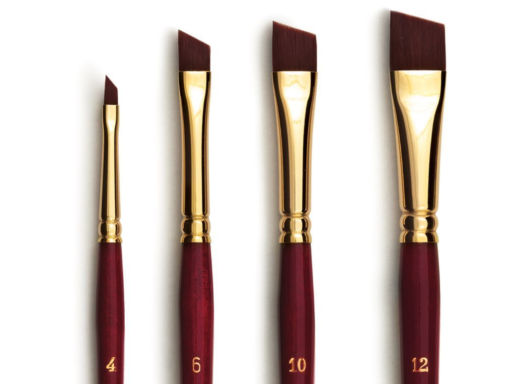 Mångsidig syntetpensel. Bra på såväl duk som trä, gips och keramik. Slitstark med lång livslängd. Spänstig, klarar även tjockare färg. Interlocked-behandlad för formstabiliet. Kort, lackat brunt skaft.