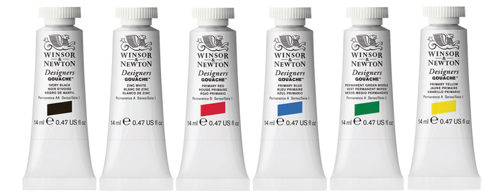 Designers Gouache från Winsor & Newton. En gouachefärg av hög kvalitet med god täckförmåga. Designers Gouache är ljusäkta, ger en matt yta och innehåller en mycket stor andel pigment. Kulörerna har mycket god blandbarhet sinsemellan och kan även blandas med akvarellfärg. Förtunnad med vatten går det bra att använda färgen i retuschspruta.