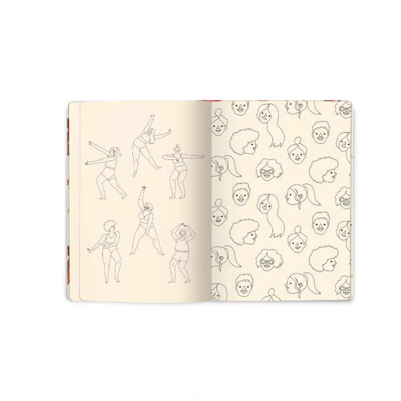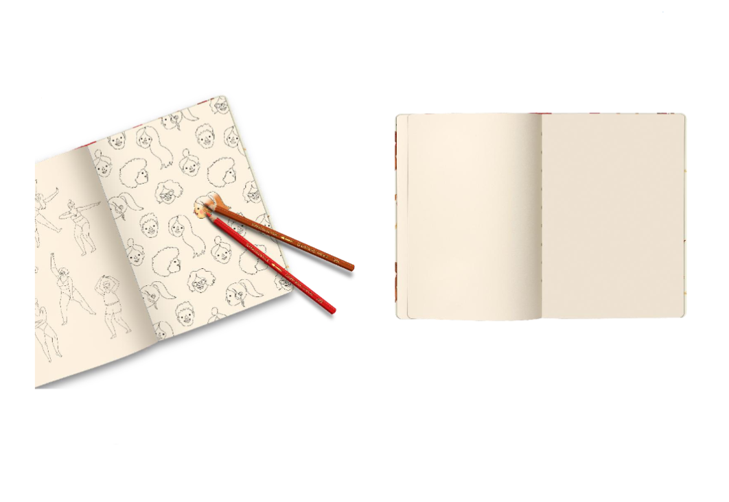 • En ritbok med ett glatt och färgglatt mönster