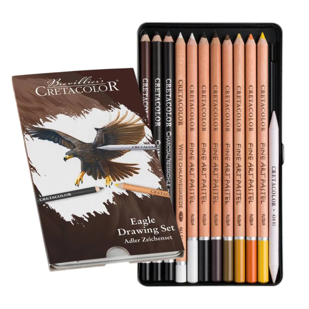 Bestående av 12 noggrant utvalda delar erbjuder det en mängd olika toner och texturer som är idealiska för precisa linjer, djupa skuggningar och uttrycksfulla nyanser. Torrpennorna ger exceptionell kontroll och professionell finish. En sofistikerad förpackning, med livfull illustration av en örn, gör helheten ännu mer inspirerande.