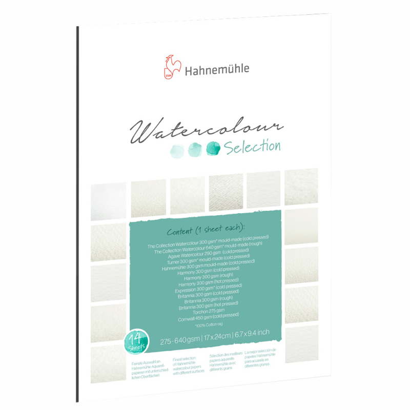 Hahnemuhle Akvarellblock 14 olika provark - 17x24cm
