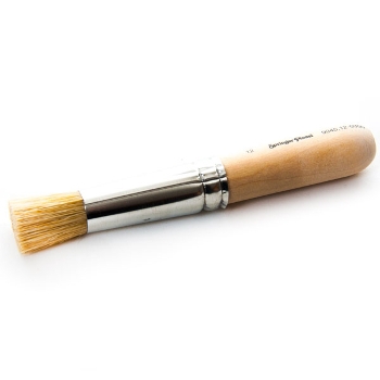Med kort svinborst för en hög styvhet. Rakklippt borst för enklare stöppling. Skaft av bok. Används vid stöppling, effektmålning, applicering av vax etc.